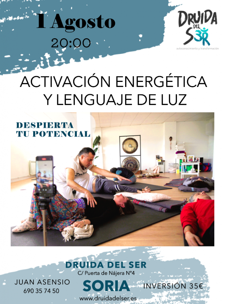 Activa tu Energía, conecta con la intuición, la espontaneidad y el disfrute de la Vida en un espacio de armonía y fluidez. El Lenguaje de Luz es un conjunto de Vibración y Sonido, acompañado por secuencias de Códigos Lumínicos. Activa y despierta en nuestras Potencialidades Divinas, armonizando nuestros cuerpos y alineándonos con nuestro propósito.